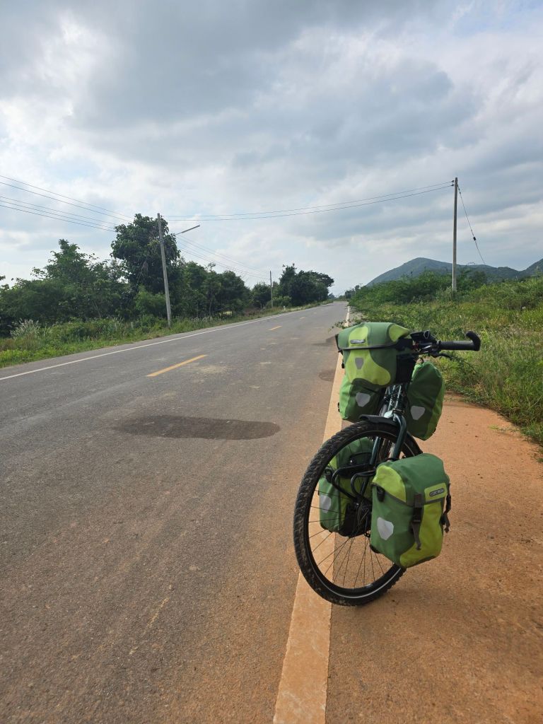 Eine FlussüberquerungUnd wieder einmal eine GeradeFahrradweg in Thailand.Es hat nicht nur Hunde am Strassenrand 😯Der Asian Highway 2Markt in Khao YoiAbendstimmung aufgenommen vom Hotel aus