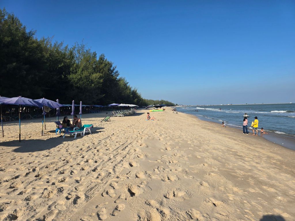 Kein Regen, kein bösartiger Gegenwind und somit ein perfekter Tag zum Radfahren. Vorsichtshalber habe ich gestern meine heutige Strecke weiter ins Landesinnere verlegt, weg von der Küste. Und tatsächlich, ich hatte praktisch keinen Wind. Nach 40 Kilometern habe ich Hua Hin erreicht. Die Stadt hat 65’000 Einwohner und ist als älteste Sommerresidenz der Königsfamilie und somit einer der wichtigsten Touristenorte Thailands. Die Stadt mit ihrem Verkehr hat mir einen Vorgeschmack gegeben, was mich in Bangkok erwarten wird. Im Hotel angekommen habe ich mich dazu entschlossen, morgen einen Ruhetag einzulegen. Im Ort hat es viele Restaurants und Bars und das Meer lädt zum Baden ein. Also nutze ich die Gelegenheit und geniesse das Nichtstun.