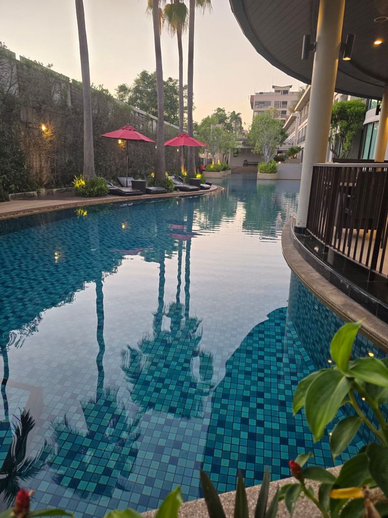 Landschaft zwischen den StädtenWat Prayurawongsawat WorawihanStadteinfahrt nach BangkokHotel PoolKhlong nahe dem Hotel Siri Heritage BangkokRush HourSkyline von Bangkoks Geschäftsviertel