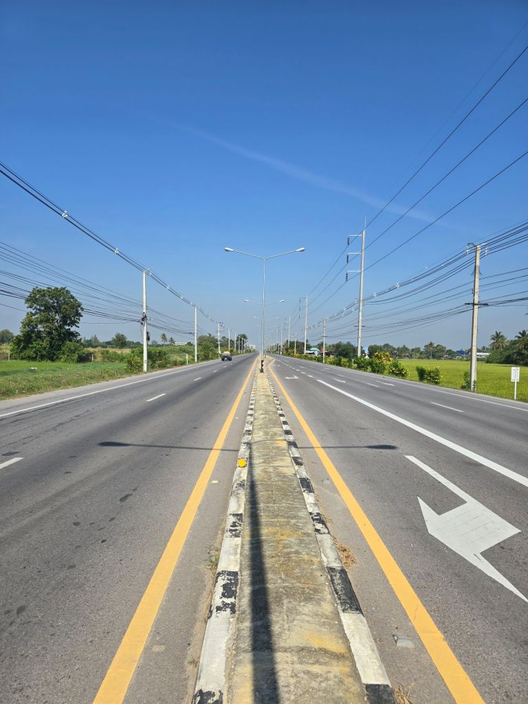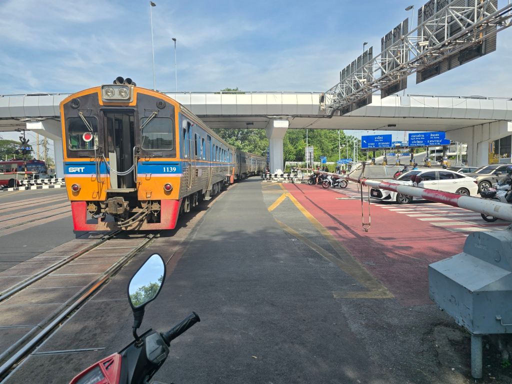 Nach dem gestrigen Ruhetag bin ich heute nach einem Frühstück vom Hotel mit vollen „Batterien“ Richtung Norden gestartet. Nach 20 Kilometern habe ich die Küste und das Meer verlassen. Ab jetzt bin ich nur noch im Landesinneren unterwegs. Nun sind auch schon die ersten Schilder sichtbar, die nach Bangkok weisen. Ich bin auf dem AH2 „Asian Highway 2“ unterwegs. Dieser AH2 führt von Denpasar in Indonesien bis ins 13´177 Kilometer entfernte Khosravi im Iran. Also ich könnte noch eine Zeitlang unterwegs sein, wenn ich wollte. Das Klima hat sich gegenüber jenem an der Küste merklich verändert. Es ist heisser geworden, aber mit einer weniger hohen Luftfeuchte als in Malaysia. Ich habe eben im Internet gelesen, dass Bangkok die temperaturmässig heisseste Stadt der Welt sei. Das heisst für mich, am Morgen in der Früh unterwegs zu sein.