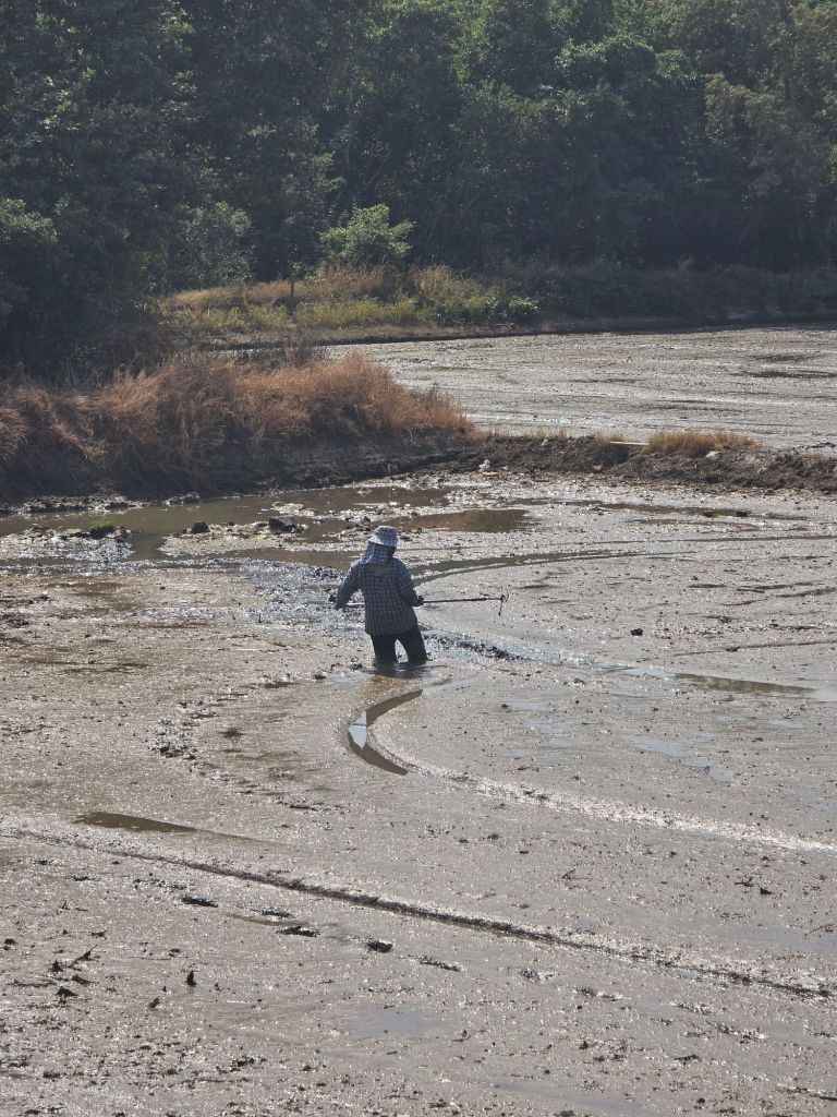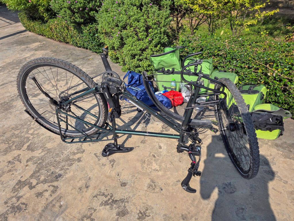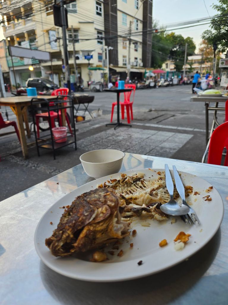 Noch am Vorabend habe ich die heutige Etappe umgeplant. Damit ich nicht den grössten Teil auf der AH2 zu fahren habe, bin ich auf Nebenstrassen ausgewichen. Dies hatte aber zur Folge, dass ich 10 Kilometer mehr Strecke zurücklegen musste. In Ratchaburi fühlte sich das Fahren plötzlich seltsam an. Und siehe da, ich entdeckte einen Plattfuss vorne. Ich habe noch nie so geschwitzt bei einer Reparatur eines platten Reifens. Es hatte über 30° und ich fand keinen Schatten in der Nähe. Bei der Kontrolle des Reifens fand ich zwei ganz feine, aber fiese Dornen, die im Reifen steckten. Nach dem Duschen und Waschen der Kleider durfte ich auch noch den defekten Schlauch flicken. So habe ich wieder einen zweiten Reserve-Schlauch. Jetzt bin ich noch eine Tagesetappe von Bangkok entfernt. Ich bin gespannt, wie die Fahrt in die Millionenstadt mit dem Velo verlaufen wird.