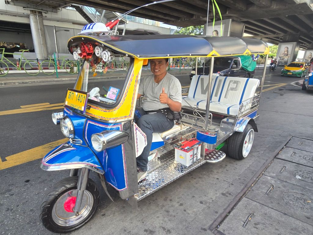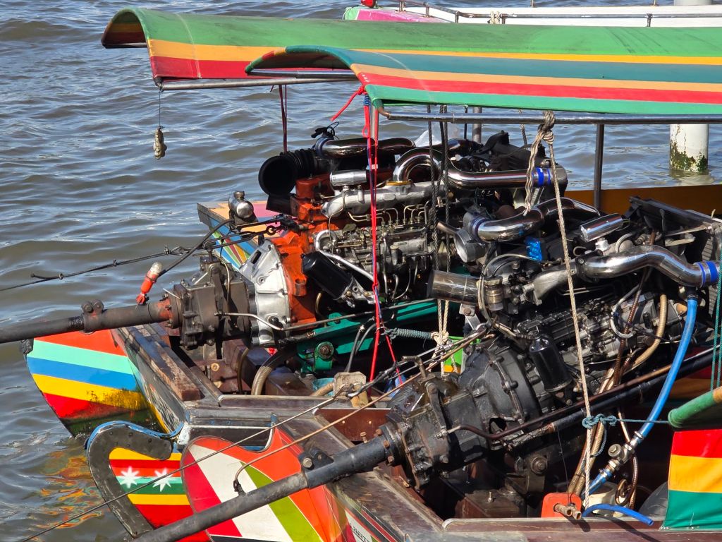 Mein „Jaguar“ gehegt und gepflegtDer goldene Chedi im Grossen PalastDer KönigspalastDach eines Gebäudes im Grand PalaceDie Boote auf dem Chao Phraya sind nicht wirklich untermotorisiert.Touristenbus, da hätte unsere MFK die helle Freude daran.In dieses Wasser würden wir nicht einmal mit einem 3-Fach Neoprenanzug steigen.StrassenkücheDieser Zackenbarsch war sehr fein und es ist interessant, dem Strassenleben zuzuschauen.