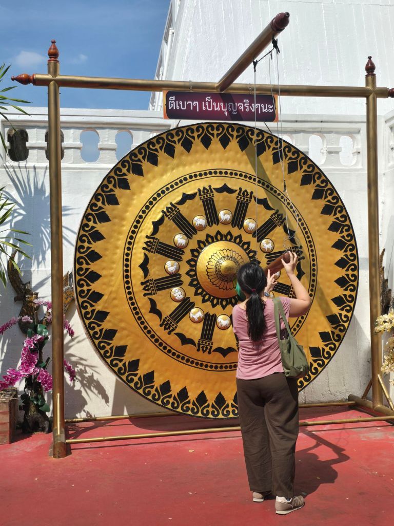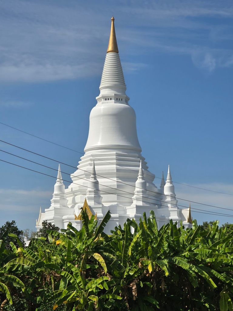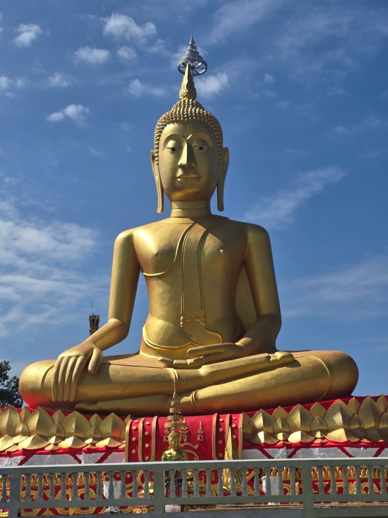 Die Landschaft hat sich auf meiner Reise seit gestern nicht wesentlich verändert. Grosse Reisfelder dominieren die Landschaft. Was zugenommen hat, ist die Anzahl an Tempeln. Für mich sehen sie alle ähnlich aus. Ich weiss von der letzten Thailandreise mit unserem geschichtsstudierten Guide, dass die Haare und Kopfform etwas über die Dynastie der Buddhastatue aussagen. Sing Buri Stadt hat circa 60´000 Einwohner. Die Provinz Sing Buri hat über 200’ 000 Einwohner. 88% der Fläche werden landwirtschaftlich genutzt. Das sieht man an den riesigen Reisfeldern.