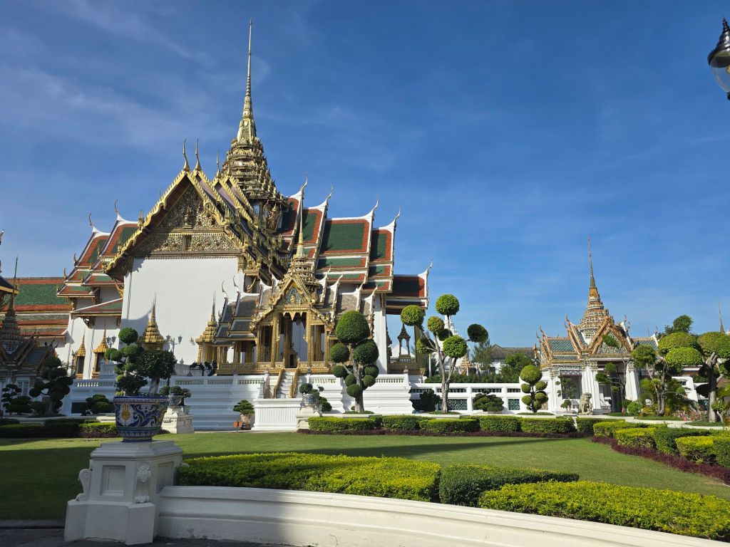 Heute bekam mein „Jaguar“ ein paar Streicheleinheiten. Reinigen mit den in Malaysia gekauften „Feuchtetücher für Autos“ und prüfen des Luftdrucks der Reifen, vor allem im Vorderreifen nach dem Plattfuss vor vier Tagen. Danach besichtigte ich den Grossen Palast. Der Grand Palace war bis 1946 die offizielle Residenz der Könige von Siam. Natürlich war ich nicht alleine dort. Gefühlt 10000 Chinesische Touristen-Gruppen waren auch dort. Und sie sind so laut – unglaublich. Es kam mir auch respektlos vor. Andere Länder – andere Sitten. Nach dem Besuch des Palastes bin ich noch durch das Quartier ums Hotel gestreift. Nach dem ganzen Prunk und Pomp fällt einem das Elend und der Schmutz, in dem einige Menschen auf der Strasse leben, als Kontrast erst so richtig auf. Am Tag wird auf den Trottoirs alles verkauft. Vom einzelnen Bügel einer Brille bis zum alten Sex-Heftli, einfach alles, was man sich nur vorstellen kann. Am Abend machen die Strassenhändler den Strassenküchen Platz. Und bei diesen isst man wirklich fein.