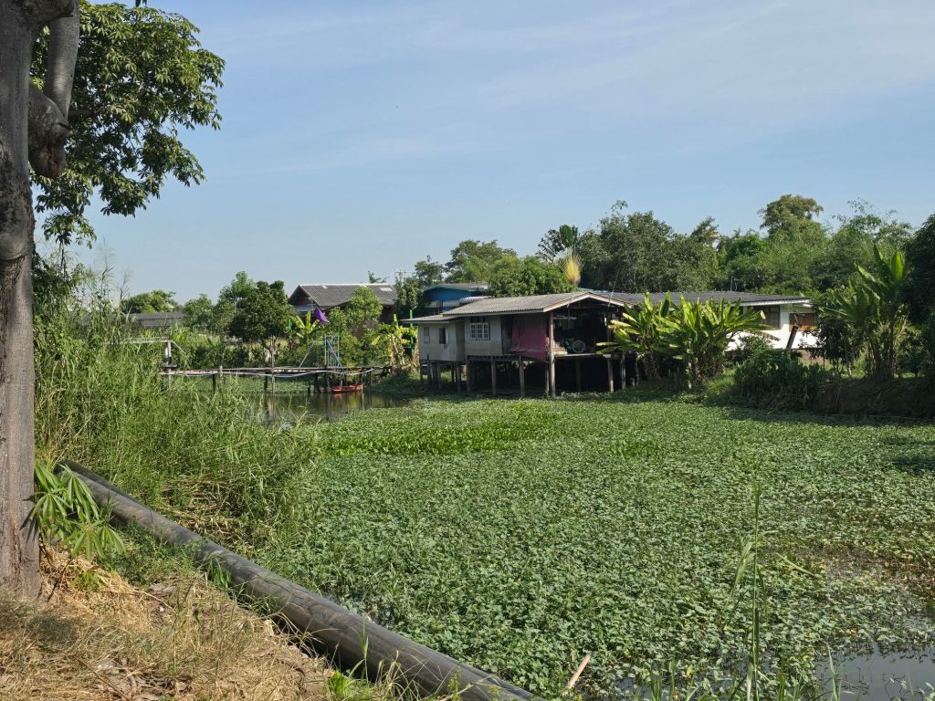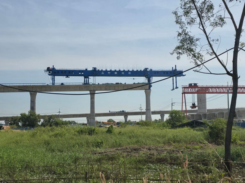 Nach der Stadtgrenze BangkoksEiner der Wasser-Kanäle, denen die Strasse entlang führtBaustelle des Thai-Chinese high-speed ProjectDie Betonpfeiler stehen schonBauer im ReisfeldEine der vielen TempelanlagenMeine Unterkunft für heute, Baan Suan Kruang Kao