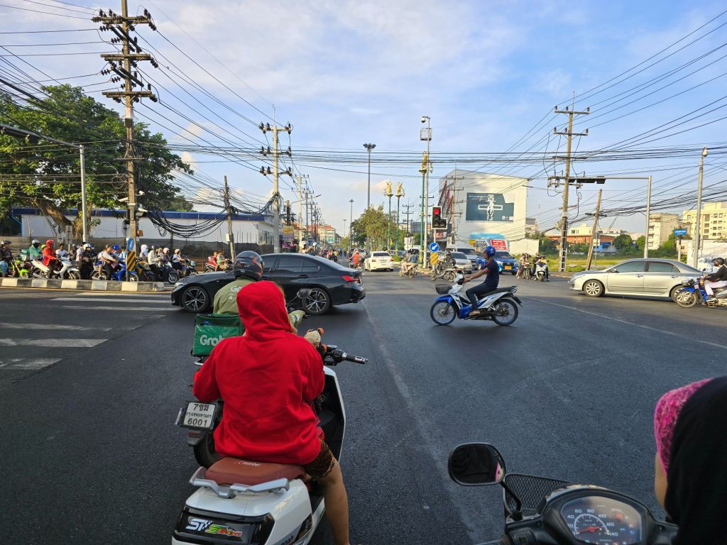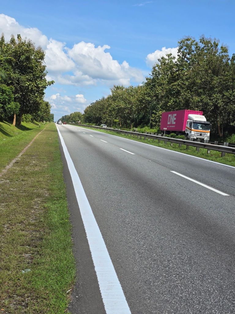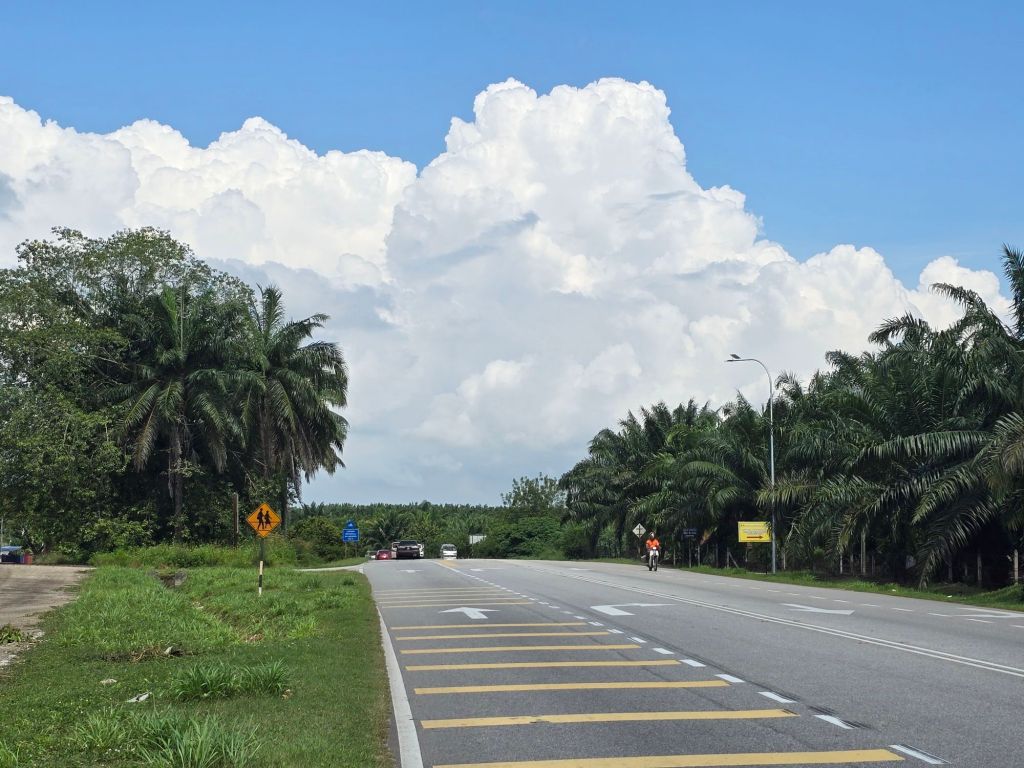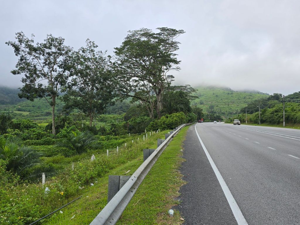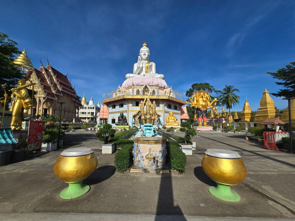 Dies war bis jetzt meine längste Etappe. Am Morgen, hinaus aus Hat Yai, bin ich prompt in die Rush Hour geraten. Die Ampeln von grossen Kreuzungen werden auf rot gestellt und ein Polizist regelt, unter fleissigem Gebrauch seiner Trillerpfeife, den dichten Verkehr. Richtung Norden war ich heute und auch in den kommenden Tagen auf der Thailand Road 4 unterwegs. Mit 1274 Kilometern ist sie die längste Schnellstrasse Thailands. Es waren viele Lastwagen unterwegs, was aber kein Problem ist, ausser dem Lärm. Als Rad- und Rollerfahrer fährt man auf dem breiten Pannenstreifen, wenn er überhaupt dafür vorgesehen ist. Das Wetter war gut, oft war es leicht bewölkt und einmal fielen ein paar Regentropfen. Zwei Steigungen musste ich bewältigen und genau an diesen, fand die Sonne ein paar Lücken in der Wolkendecke und es wurde richtig heiss.