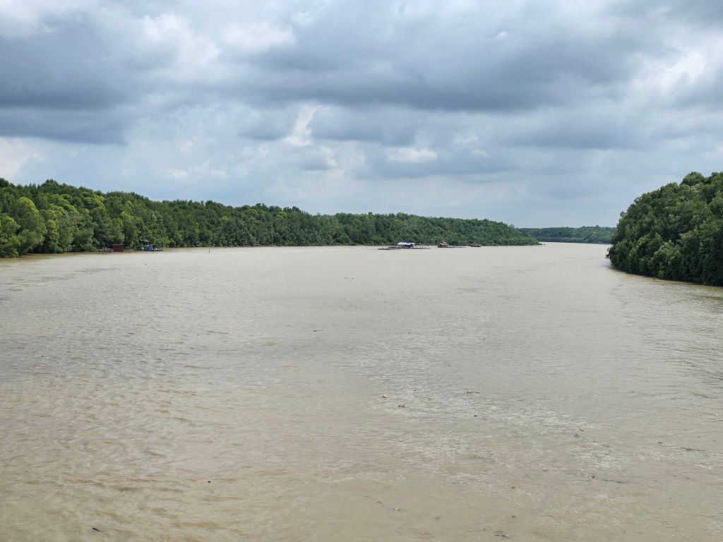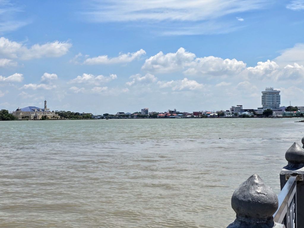 Batu Pahat River, die Flut drückte das Wasser ins LandesinnereMuar RiverJalan Maharani (Jalan = Strasse) Aussicht vom 52 The Grace HotelRoute der letzten fünf Tage