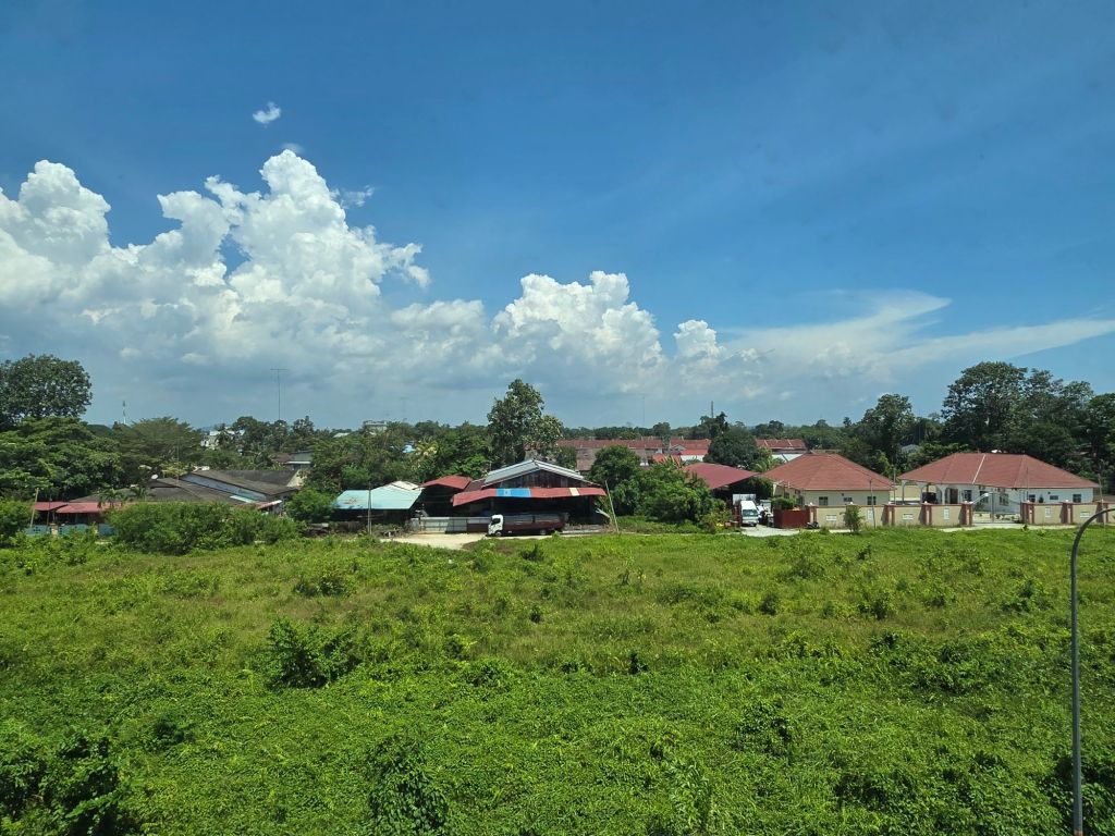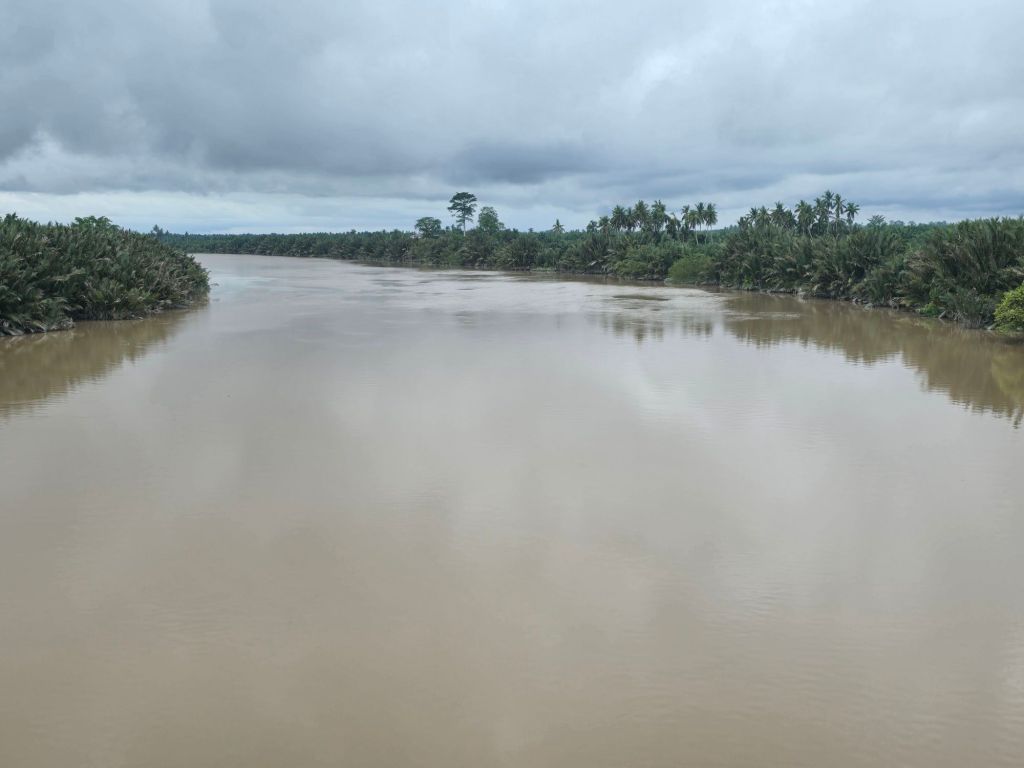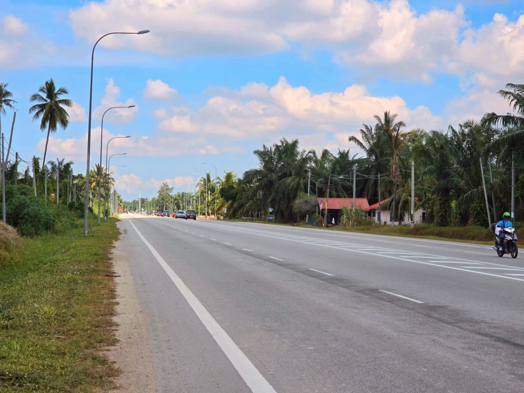 Heute Morgen wurde ich um sechs Uhr früh durch ein Gewitter geweckt. Somit wusste ich, dass ich mir Zeit lassen kann mit dem Aufstehen. Bis ich um halb neun aufs Velo gestiegen bin, sind nur noch vereinzelte Regentropfen gefallen. Während der ganzen Fahrt nach Teluk Intan war es bewölkt, dadurch waren die Temperaturen angenehm. Auf meiner Route war eine neun Kilometer lange, schnurgerade Strecke zwischen Palmölplantagen ohne einen Meter Schatten. Da war ich wirklich froh um die Wolken am Himmel.