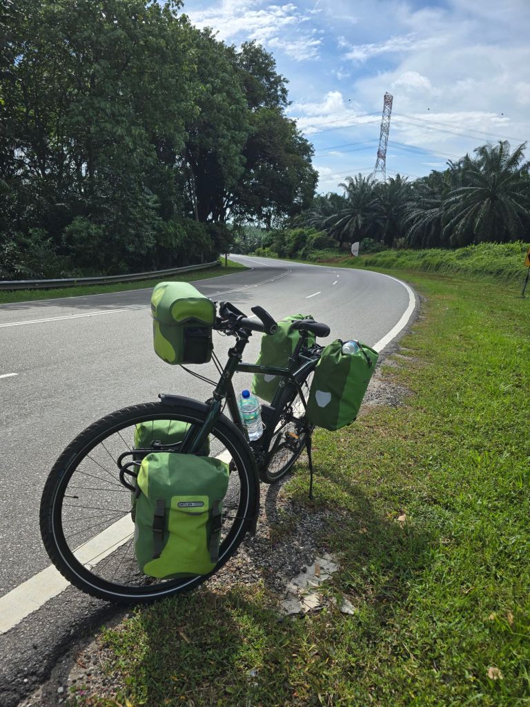 Gestern Abend habe ich beschlossen, meine geplante Route über die Malayische Ostküste über die Cameron Highlands zur Insel Penang zu ändern. Der Grund für meinem Entscheid sind die hohen Temperaturen und die zu fahrenden Höhenmeter. Der Plan, Georgetown zu besuchen, bleibt jedoch weiter bestehen, nur aus einer anderen Richtung. So bin ich heute nicht Richtung Ostküste, sondern in die Gegenrichtung zur Westküste gefahren. Die Fahrt führte vor allem durch Palmöl-Plantagen. Unterwegs sah ich einige Makaken, die von weitem auf sich aufmerksam machten durch ihr Geschrei. Einmal wollte ein Waran vor mir über die Strasse, hat es sich aber anders überlegt 😉 . So bin ich heute nur 43I Kilometer weit geradelt. Noch zu Malaysia: Es braucht keinen Wecker, um 05:45 Uhr hat der Muezzin über Lautsprecher seine Gläubigen zum Gebet gerufen.