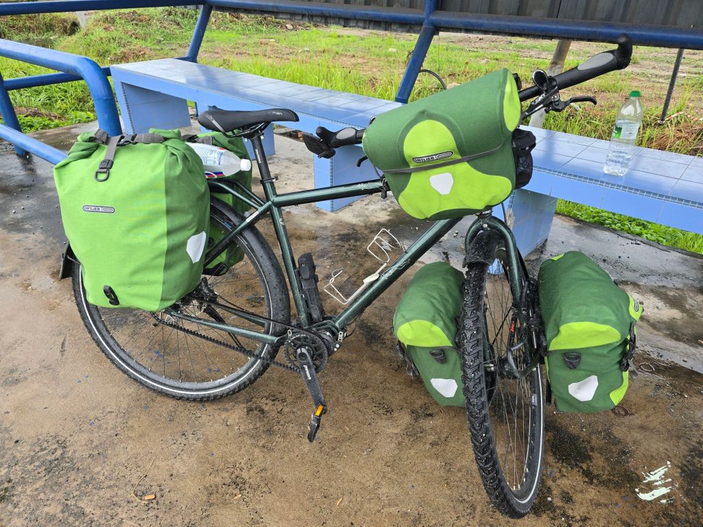 Über eine wenig befahrene Strasse bin ich heute quer durch Malaysia Richtung Westküste gefahren. Das erste Mal hatte ich etwas Gegenwind, was den Vorteil hatte, dass es gefühlt kühler wirkte. Auf der Fahrt hörte ich plötzlich ein vertrautes Motorengeräusch. Zwei GS Motorräder überholten mich. Ich bekam fast ein wenig Heimweh nach meiner GS 😉. Auf der Strecke boten viele Händler frische Ananas direkt von den Feldern an. Im Hotel in Benut angekommen, musste ich erst einmal meine Velokleider waschen. Bei einem kleinen Rundgang durch den Ort bin ich an einer Laundry vorbei gekommen. Das wäre eine gute Möglichkeit gewesen, meine Kleider waschen zu lassen.