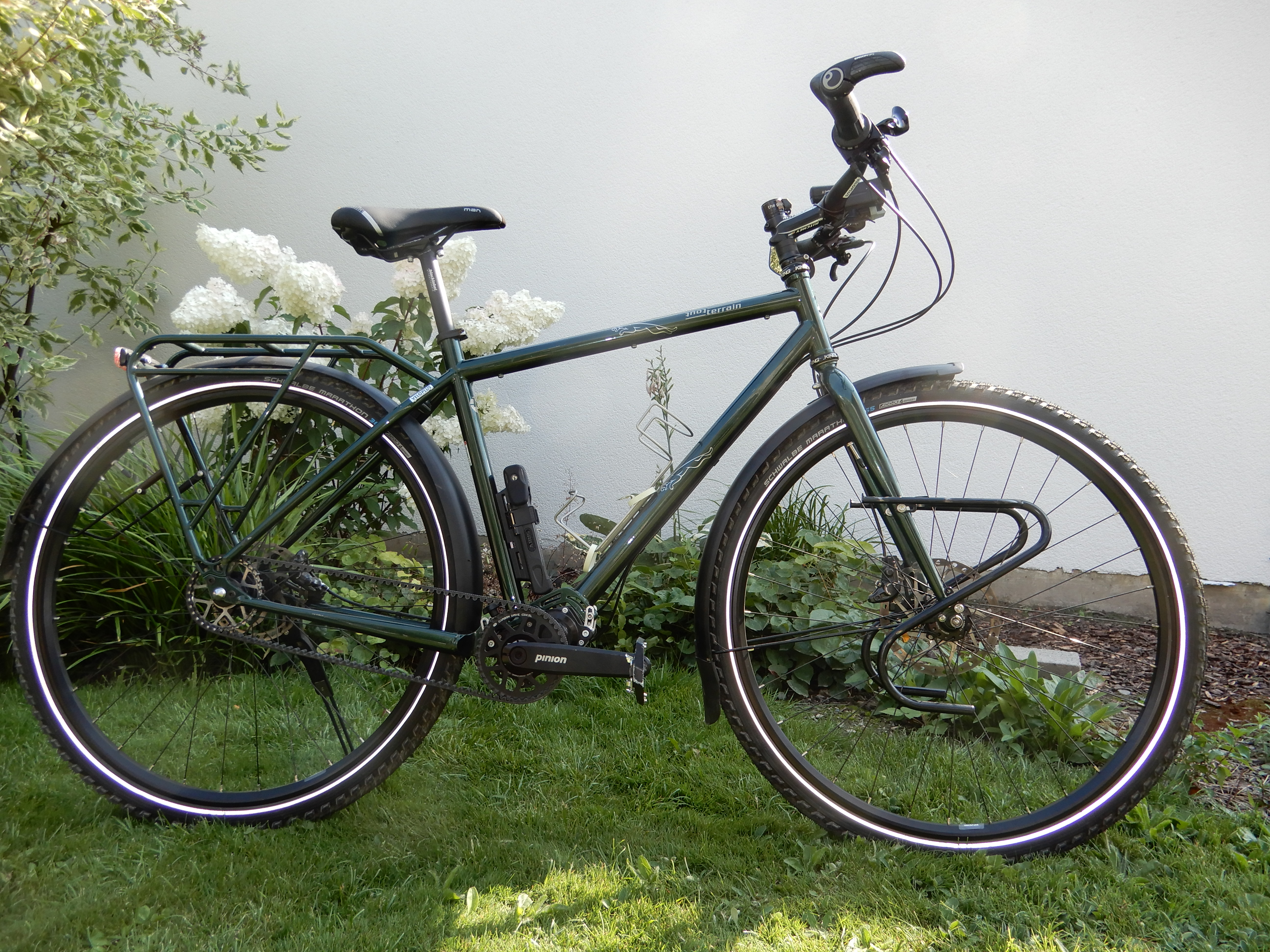 Das wohl wichtigste ist das richtige Velo. Ich wollte ein robustes, einfach zu wartendes Velo. Das Tout Terrain Tanami mit Pinion Schaltung, habe ich dann als gebraucht im Internet entdeckt. Das Pinion Getriebe finde ich eine super Technik, da es ein geschlossenes System ist und zusammen mit dem Zahnriemen zur Kraftübertragung nur eine minimale Wartung benötigt.