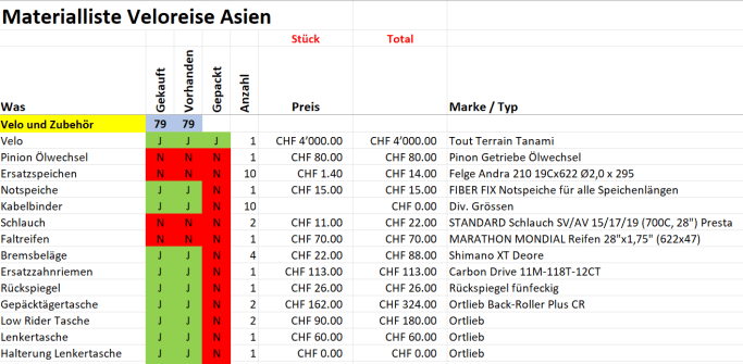 Zuerst habe ich mir viele Packlisten angeschaut und studiert und ich glaube, eine Packliste wird nie abschliessend sein. Wahrscheinlich würde man diese nach jeder Reise wieder anpassen. Ich bin gespannt, was ich vermissen werde und was ich nie nutzen werde 😉.